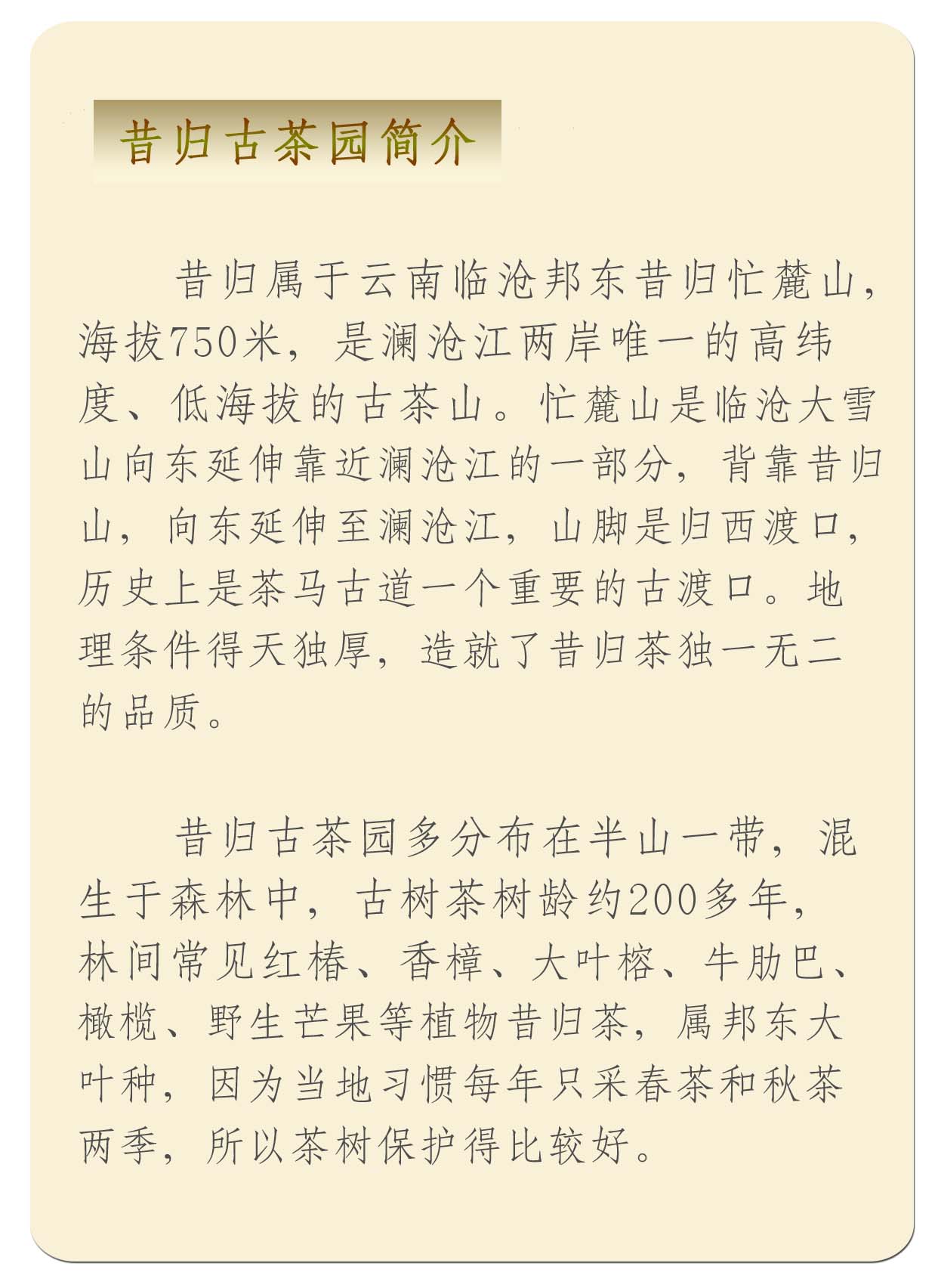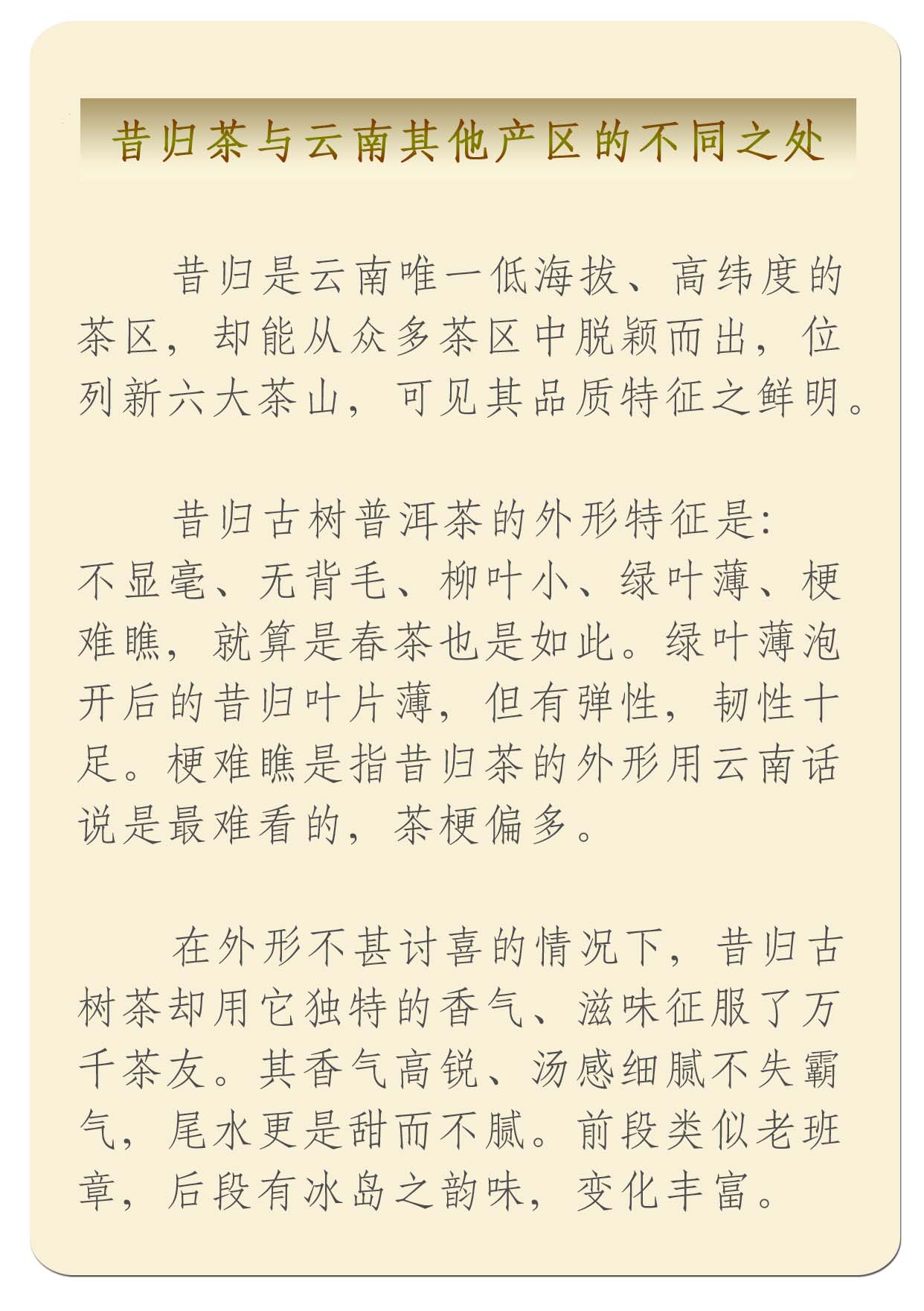 昔歸古樹生普茶的特點是什么?